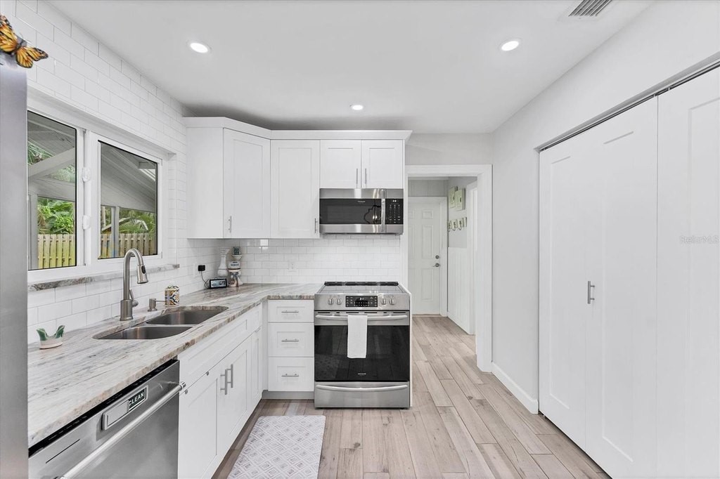 Move-in ready 3BR/1.5BA home with no HOA or rental restrictions—ideal for a primary residence, seasonal getaway, or investment property. Located on a quiet street near Lewis Park and just blocks from the Manatee River, with quick access to Anna Maria Island beaches, downtown Bradenton, shopping, dining, and the Riverwalk. Fully updated within the past 5 years with top-of-the-line finishes, including hurricane impact-rated windows and doors, roof, electrical panel, plumbing from house to street, AC, ceramic tile flooring throughout, and a modern kitchen with stone countertops, stainless steel appliances, and a large pantry. Enjoy river breezes from the beautifully tiled front porch or retreat to the backyard — perfect for entertaining large groups on the spacious screened lanai featuring dining and seating areas, plus a firepit. Plenty of room in the yard for a pool. Don’t miss this opportunity to own a low-maintenance, centrally located home on Florida’s Gulf Coast!